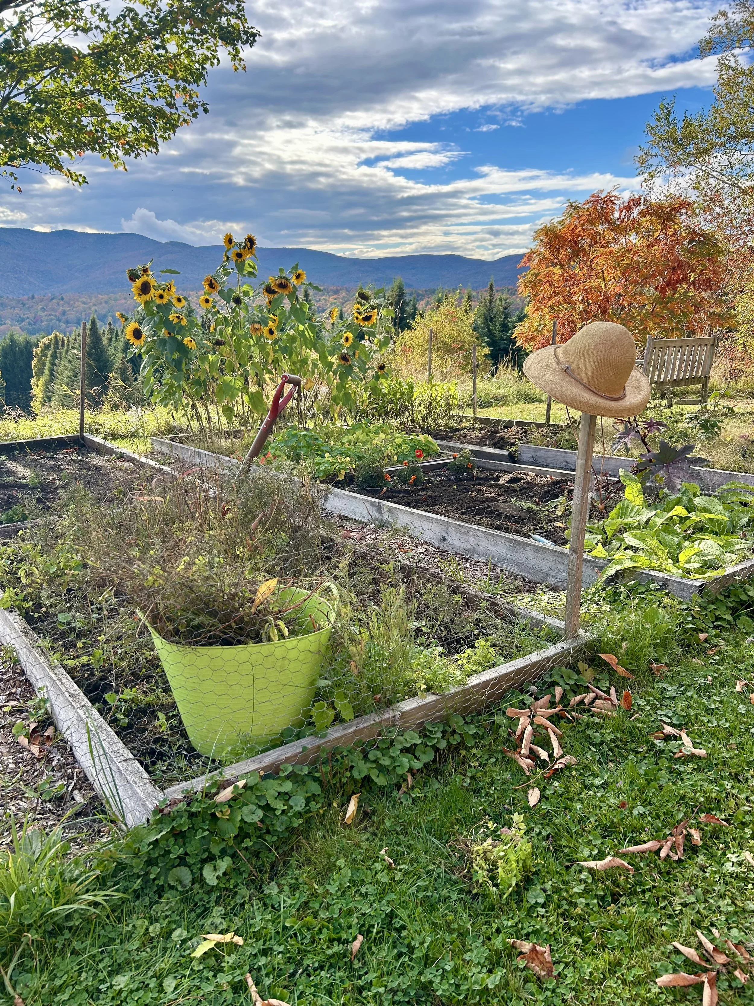 The Equinox has come and gone and now we are tidying up the garden which is beautifully connected to enjoying the foliage. Inhaling the fresh air, stretching to the sky, thanking the gardens for their yeoman’s work this summer, dreaming about next spring’s planting…
