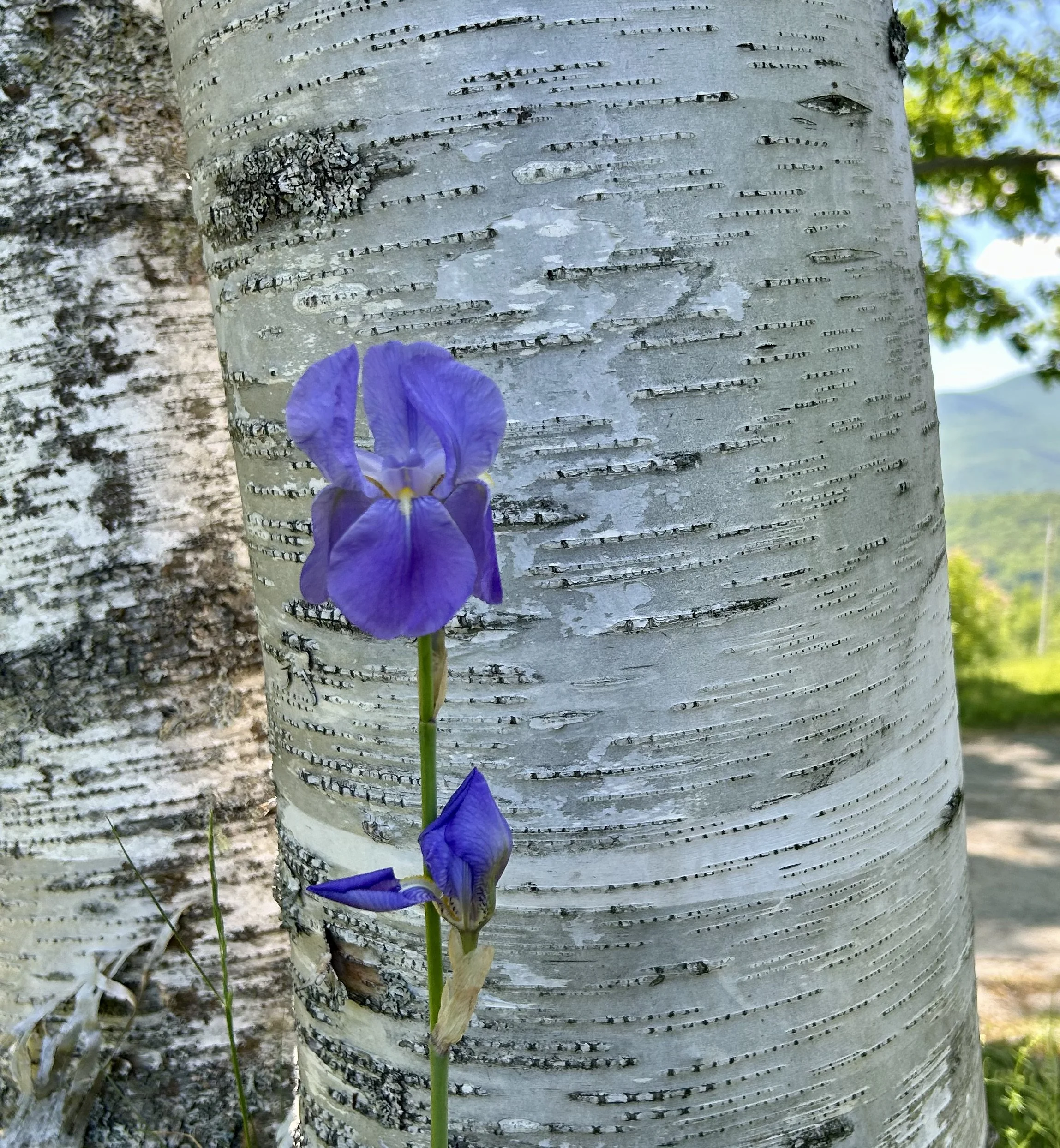 Jacob’s ladder, lupine, iris, violets and lobelia are blooming in a riot of blues and purples in the garden beds and window box. Tiger Swallowtails are gulping down the last of the lilac nectar. The bluebird babies are fledging and the barred owl starts its hooting just as the sun peeks over the ridge in the morning. The peony crescent garden is just about ready to explode. The lettuce is coming on strong in the hoop house and the chives are blooming. We are eating most of our meals out on the three season porch, where we can keep an eye on the deer grazing in the meadow. I think we need to thread the fishing line through the hook eyes at the top of the fence posts around the veggie garden beds.