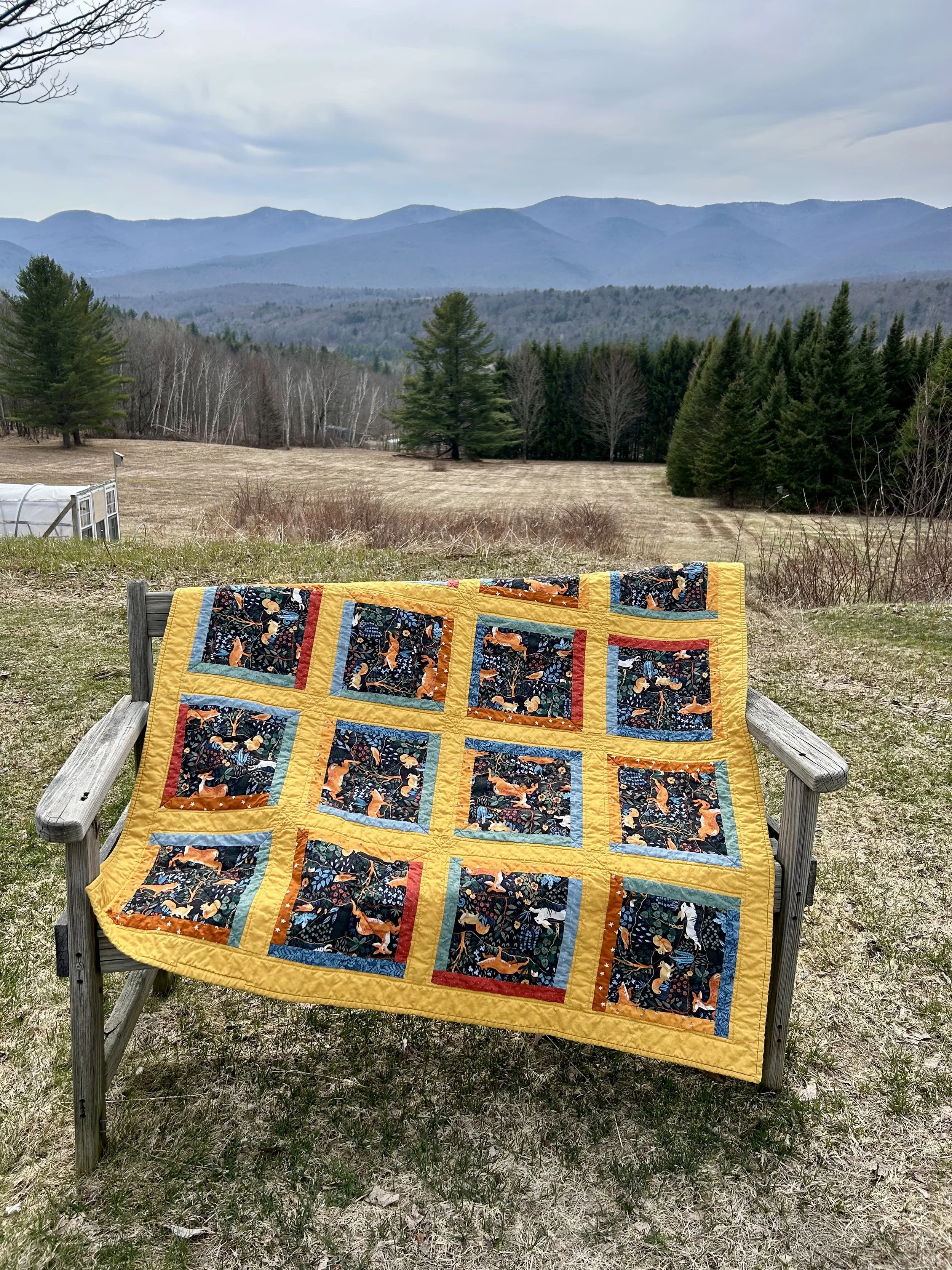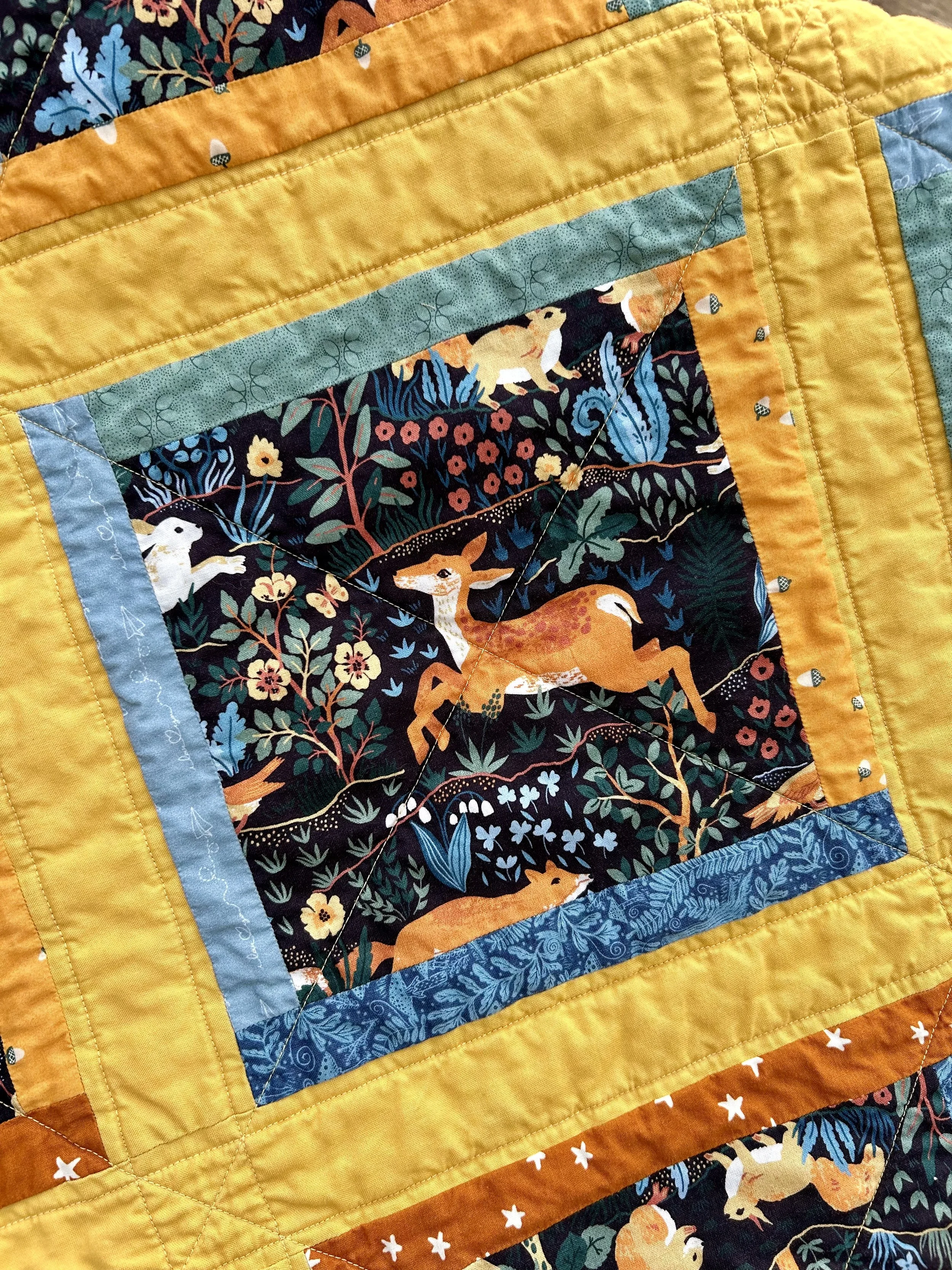 What fun it was to collect these sweet prints to compliment the critters. The ferns and stumps came from Ann Arbor Sewing and Quilting Center via my daughters Lindsey and Gretta. We were shopping together for our next collaboration, via FaceTime. I fell in love with this one and asked for half a yard. :-)