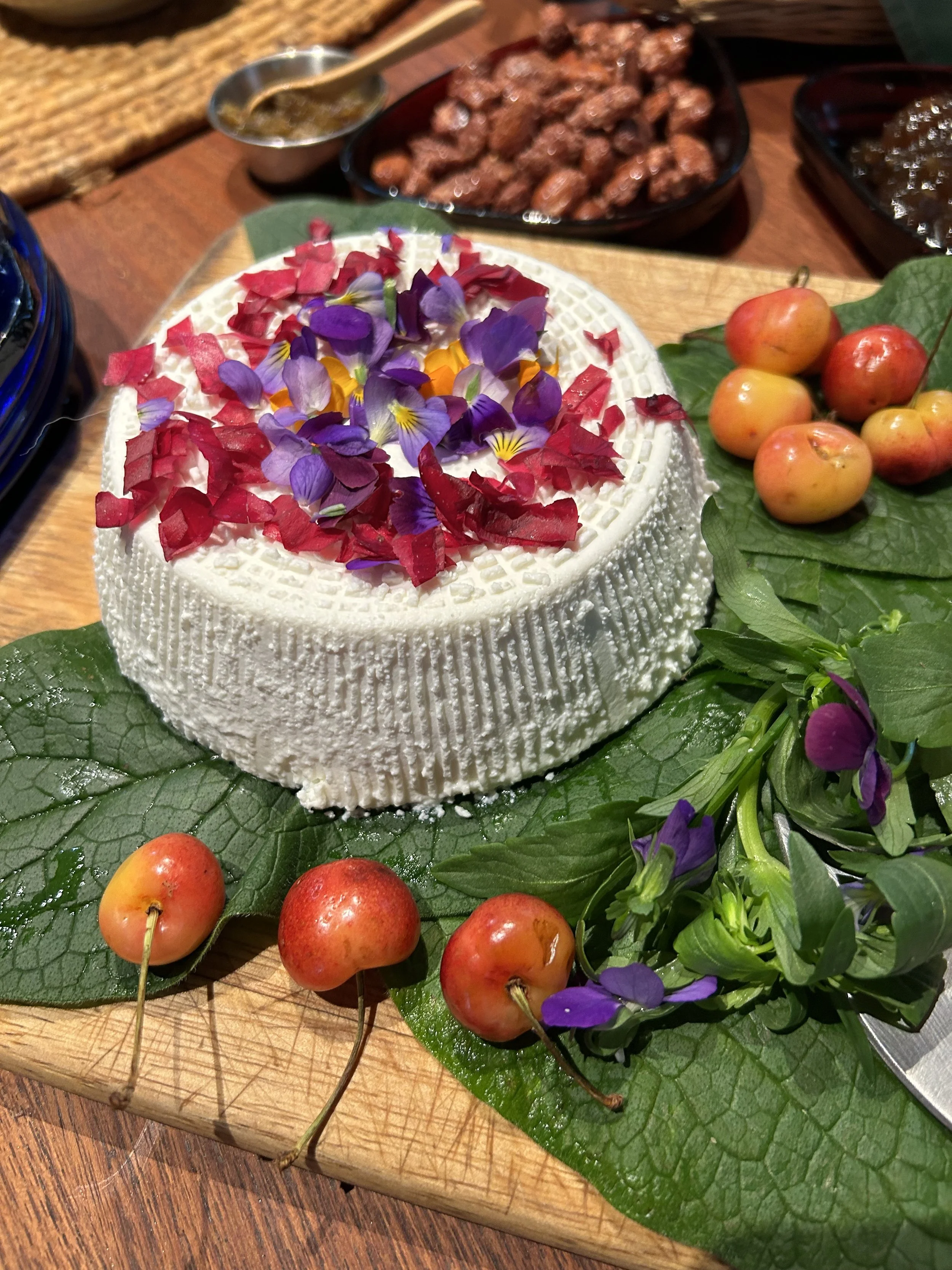 A group of friends gathered down the road for a solstice celebration. This gorgeous cheese was made from goat’s milk gathered and cellared on property.