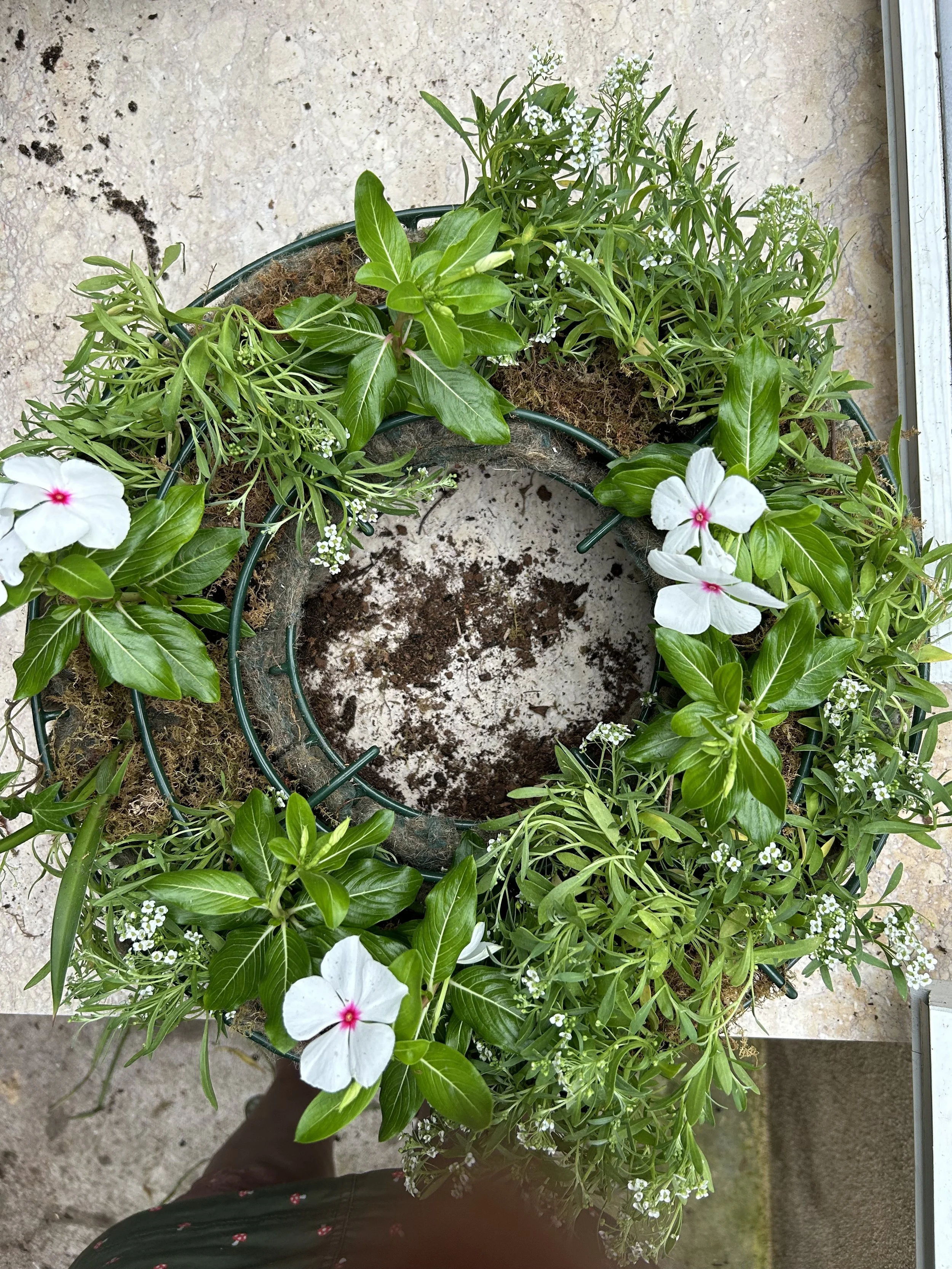 Each person’s wreath was unique as its maker. I did not crowd my plants, hoping they will fill in as the summer unfolds.
